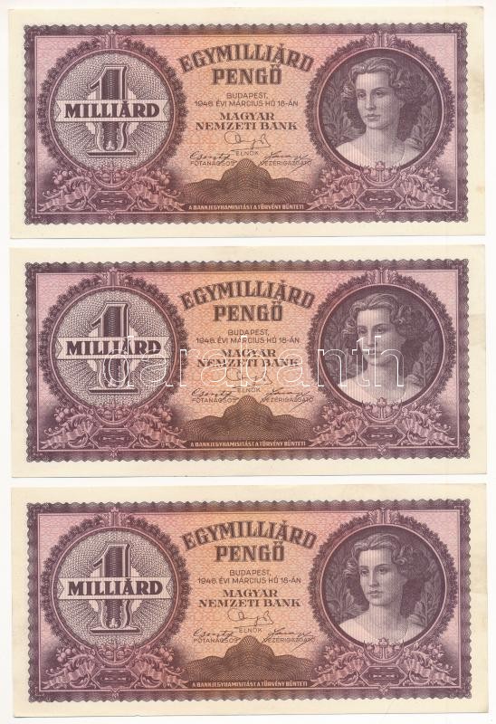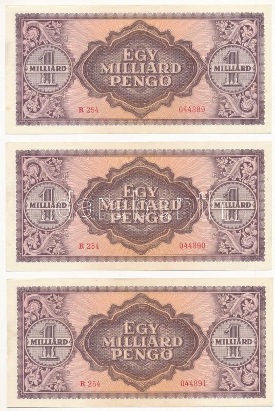 1946. 1.000.000.000P (3x) "R 254 044889-044891" sorszámkövetők T:II-II...