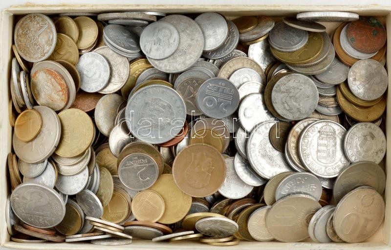 Vegyes, magyar és külföldi érmetétel mintegy ~1kg súlyban T:vegyes Mixed, Hungarian and foreign coin lot (~1kg) C:mixed