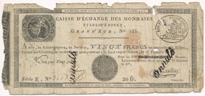 Franciaország / Rouen 1797-1803. 20Fr "annulé (érvénytelen)" felülbélyegzéssel T:IV