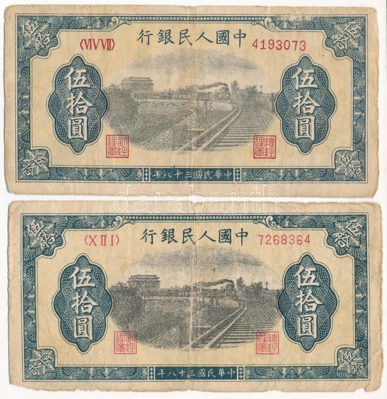 Kínai Köztársaság 1949. 50Y (2x) T:III,III- folt, anyaghiány