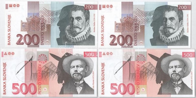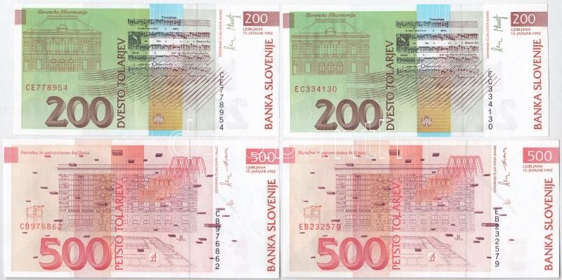 Slovenia 1992. 200 Tolarjev (2x) + 500 Tolarjev (2x) C:AU-F nice paper
