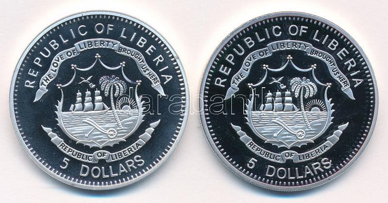 Libéria 2009. 5$ ezüstözött Cu "Nagy Hadvezérek - Bonaparte Napóleon" multicolor, tanúsítvánnyal + 2009. 5$ ezüstözött Cu "A történelem legnagyobb hadurai - Dzsingisz kán" részben multicolor festéssel, tanúsítvánnyal T:PP Liberia 2009. 5 Dollars Cu "The Greatest Warlords of History - Napoleon Bonaparte" multicolor, with certificate + 5 Dollars silver plated Cu "The Greatest Warlords of History - Chinggis Khaan" with partial multicolor picture, with certificate C:PP