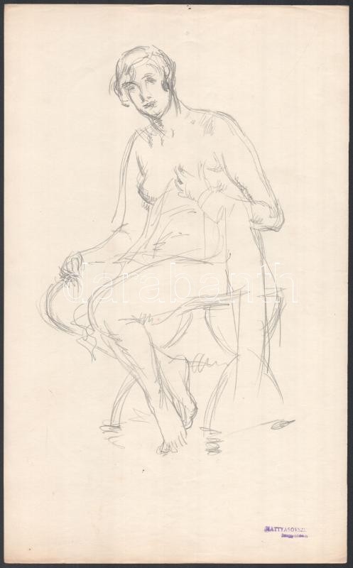Mattyasovszky-Zsolnay László (1885-1935), kétoldalas mű: Ülő női akt. Ceruza, papír. Mindkét oldalon hagyatéki pecséttel jelzett. 33x21 cm