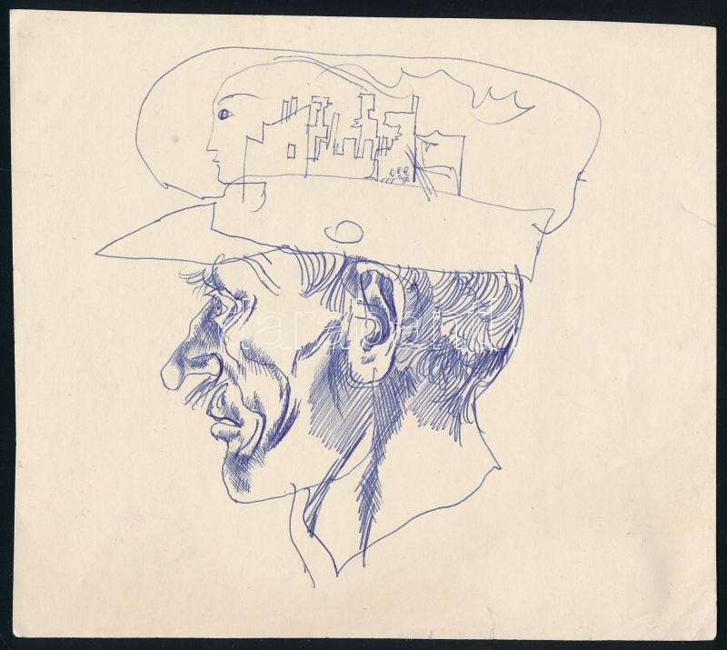 cca 1970 Szász Endre (1926-2003): Kalapos férfi. Toll, papír, jelzés nélkül, a művész hagyatékából, 14,5×16 cm