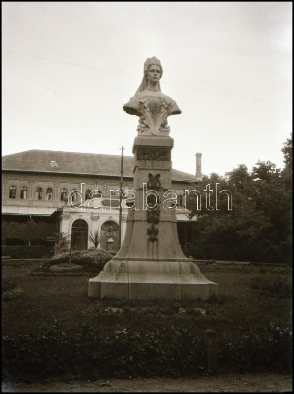 1939 Gyula, Erzsébet királyné szobra, fotónegatív, 6×9 cm
