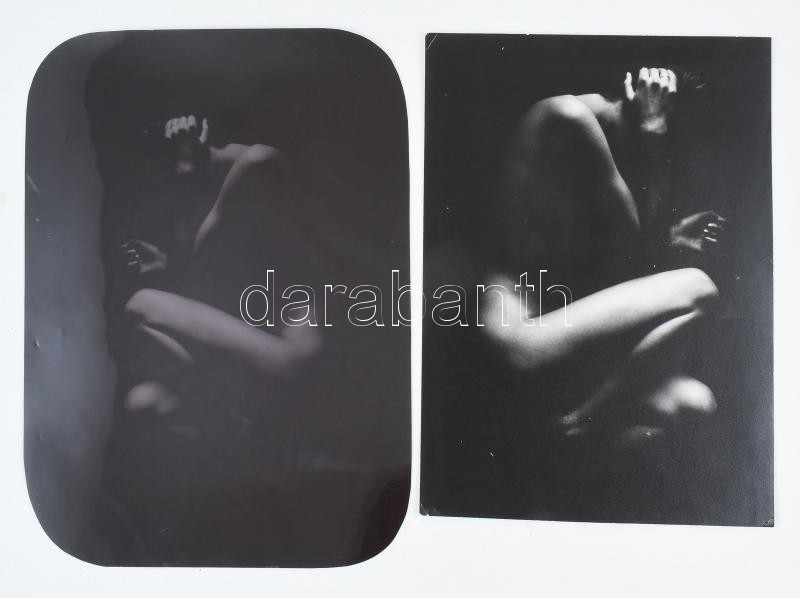 Akt művészfotó, negatívval, azonosítatlan fotóművész munkája, körbevágottak, 26x19 cm, 29x22 cm