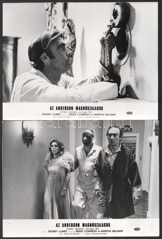 Description: cca 1971 ,,Az Anderson magnószalagok" című amerikai bűnügyi film jelenetei és szereplői (köztük Sean Connery és Martin Balsam), 9 db vintage produkciós filmfotó, ezüst zselatinos fotópapíron, a használatból eredő - esetleges - kisebb hibákkal, 18x24 cm
