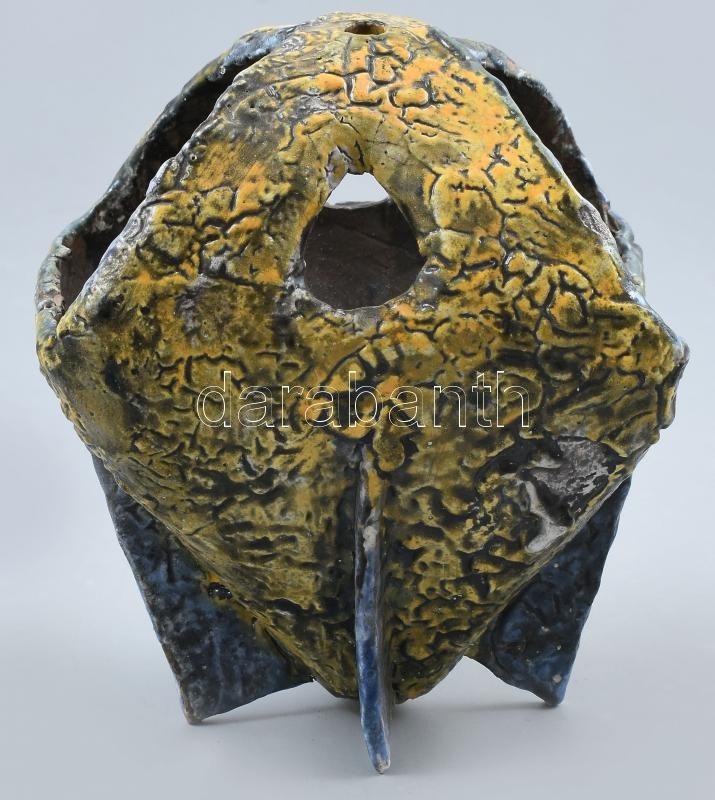 Jelzés nékül: Iparművész kerámia dísz repesztett mázzal, hibátlan 17 c...