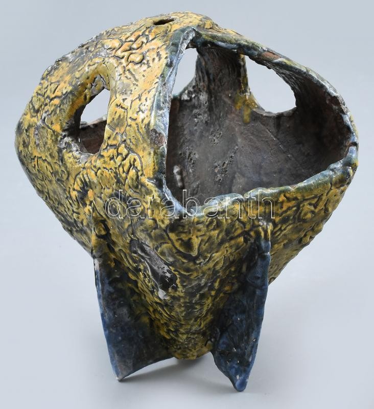 Jelzés nékül: Iparművész kerámia dísz repesztett mázzal, hibátlan 17 cm