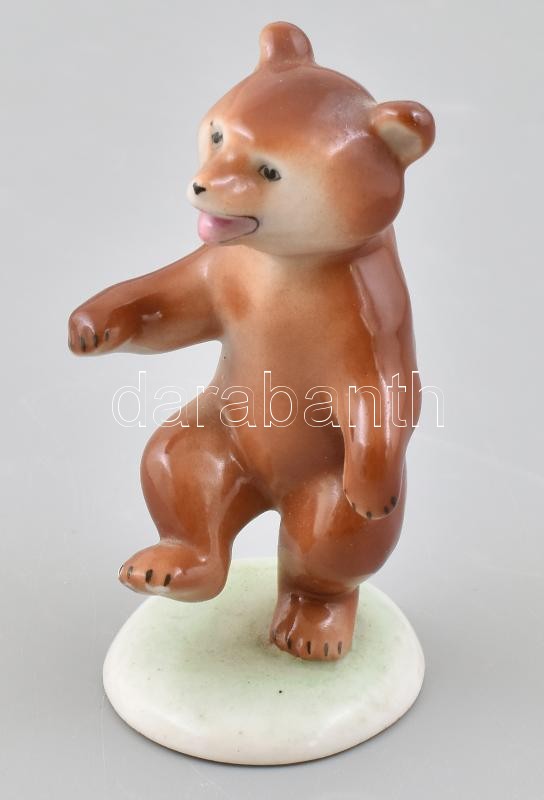 Drasche táncoló medve porcelán figura. Kézzel festett, jelzett, minimális kopással, m: 9 cm