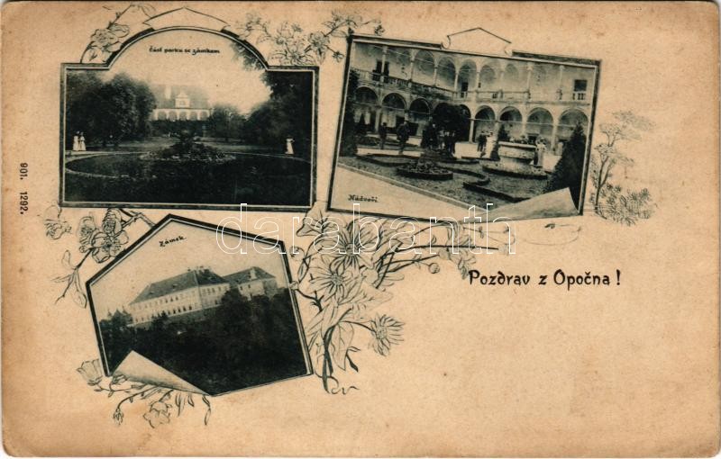Opocna, Zámek, Cast parku se zámkem, Nádvori / castle, castle park, courtyard. Art Nouveau, floral (tear)