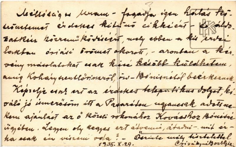 1935 Budapest XII. Zugliget, Mese köz 3. szám alatti ház, Czirákyné levele. photo