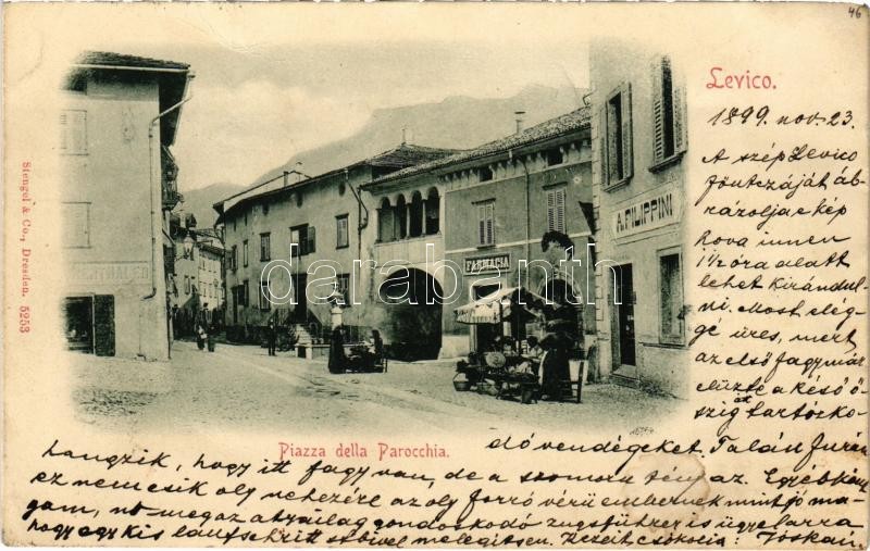 1899 (Vorläufer) Levico, Piazza della Parocchia, Farmacia / square, ph...