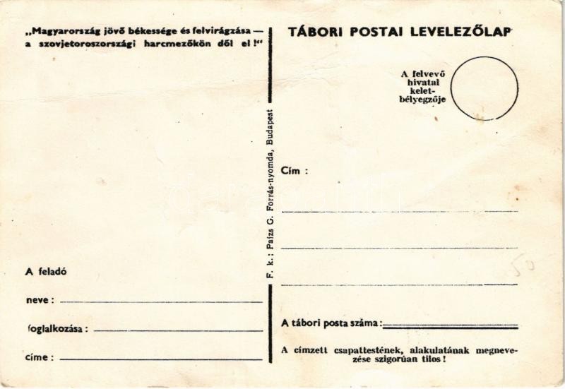 1942 Karácsonya Harcoló honvédeinké és hozzátartozóiké. Leventeifjúság honvédkarácsonya. Tábori Postai Levelezőlap / WWII Hungarian military art postcard with Christmas greeting s: Légrády S. (gyűrődések / creases)