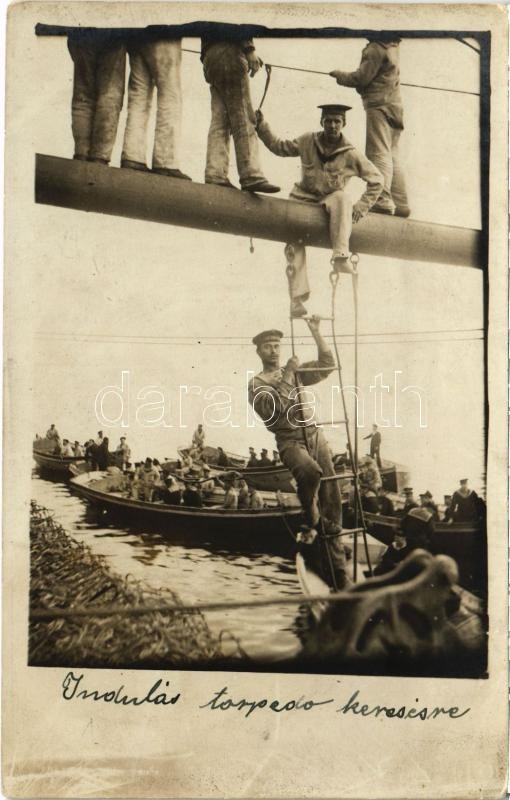 Osztrák-magyar haditengerészet matrózai indulnak torpedó keresésére, k...