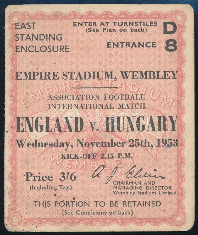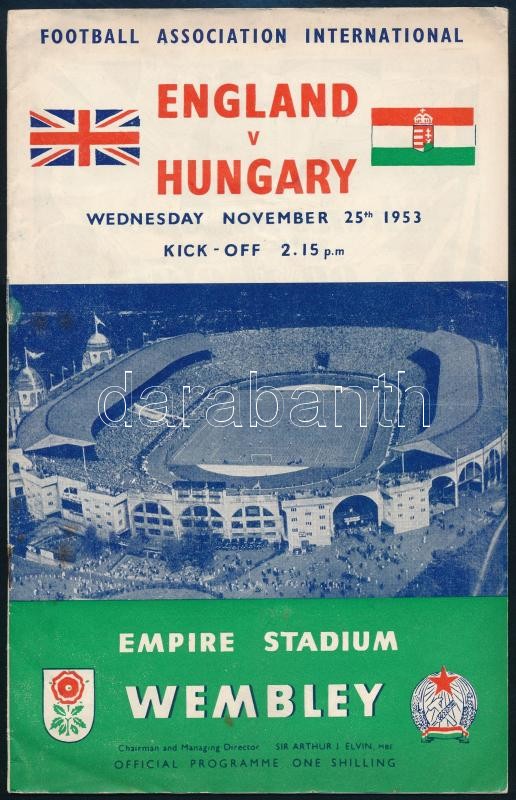 1953 Magyarország-Anglia, a legendás 6:3-as labdarúgó mérkőzés meccsfü... https://www.darabanth.com/en/425-Online-auction/425.0/Art-and-other-collectibles/Historical-documents-manuscripts~500020/1953-Magyarorszag-Anglia-a-legendas-63-as-labdarugo-merkozes-meccsfuzete-es-egy-belepo~II2712006