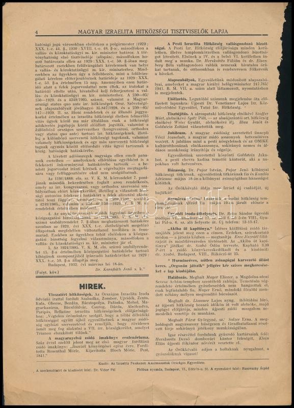 1941 A Magyar Izraelita Hitközség Tisztviselők Lapja, zsidó lap III. é...