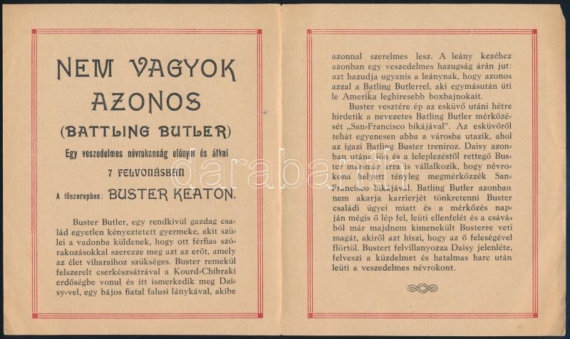 cca 1926 Nem vagyok azonos (Battling Butler), főszerepben: Buster Keat... https://www.darabanth.com/en/425-Online-auction/425.0/Art-and-other-collectibles/Printed-Materials~1000002/cca-1926-Nem-vagyok-azonos-Battling-Butler-foszerepben-Buster-Keaton-Metro-Goldwyn-Mayer-film~II2710012