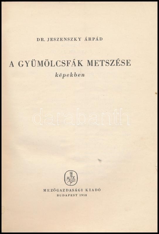 Dr. Jeszenszky Árpád: A gyümölcsfák metszése képekben. Mezőgazdasági K... https://www.darabanth.com/en/425-Online-auction/425.0/Books/Books-Gastronomy-and-Gardening~1000013/Dr-Jeszenszky-Arpad-A-gyumolcsfak-metszese-kepekben-Mezogazdasagi-Kiskonyvtar-Bp-19~II2713369