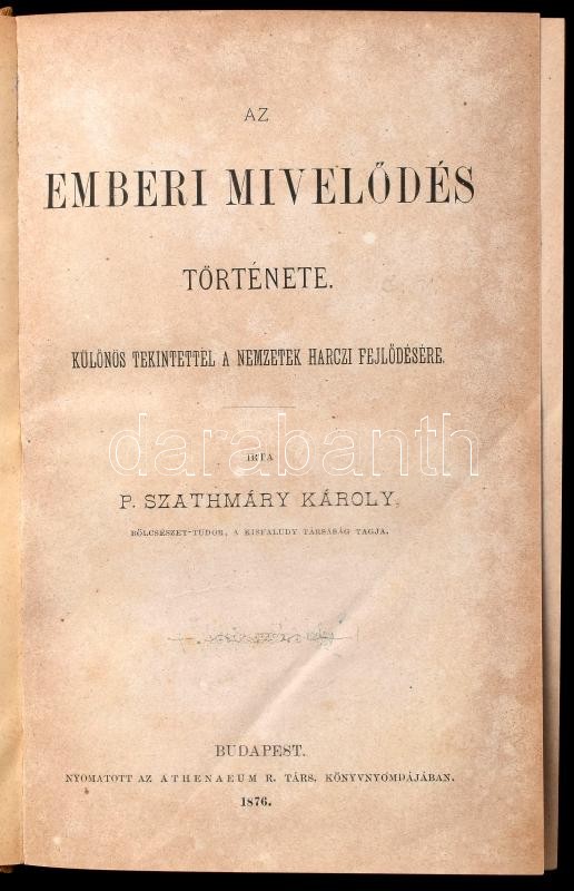 P. Szathmáry Károly: Az emberi mivelődés története. Különös tekintette... https://www.darabanth.com/en/425-Online-auction/425.0/Books/Books-History~1000009/P-Szathmary-Karoly-Az-emberi-mivelodes-tortenete-Kulonos-tekintettel-a-nemzetek-harczi-f~II2698949
