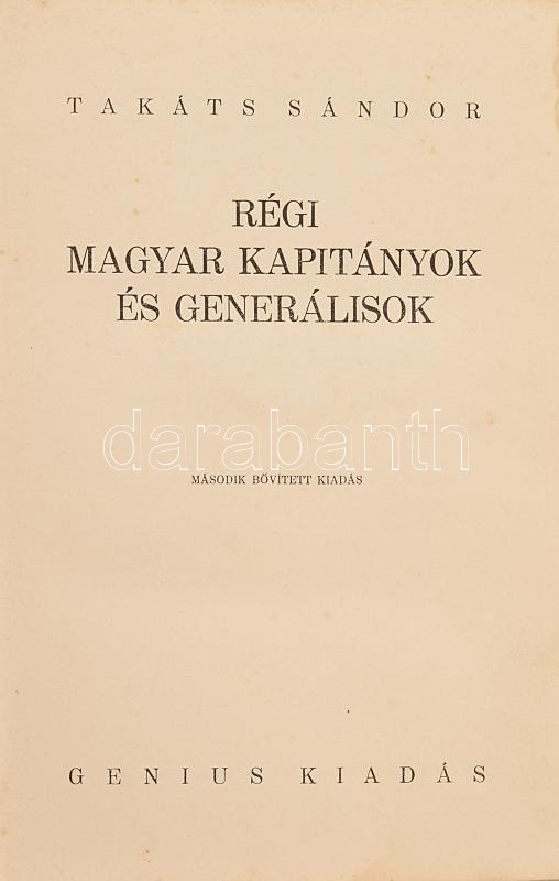 Régi magyar kapitányok és generálisok. Második... https://www.darabanth.com/en/425-Online-auction/425.0/Books/Books-History~1000009/Takats-Sandor-6-muve--Regi-magyar-kapitanyok-es-generalisok-Masodik-kiadas--Emlekezz~II2712985
