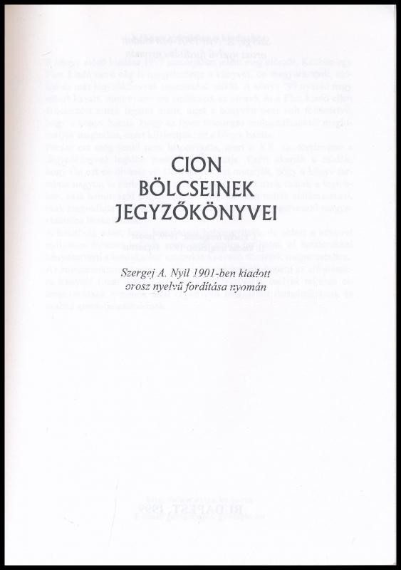 Cion bölcseinek jegyzőkönyvei. II. kiadás. Bp., 1999, magánkiadás. Kia...