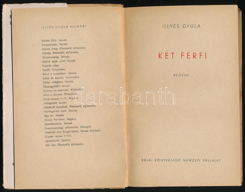 https://www.darabanth.com/en/425-Online-auction/425.0/Books/Books-Other-rarities~1000023/Illyes-Gyula-Ket-ferfi-Bp-1950-Revai-172-p-Elso-kiadas-Kiadoi-papirkotes-kisse-s~II2667542