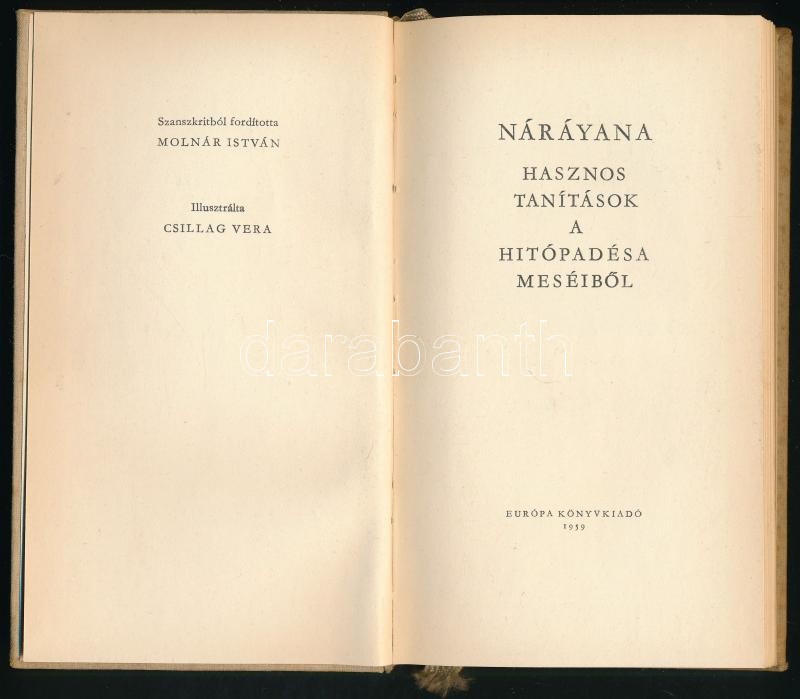 https://www.darabanth.com/en/425-Online-auction/425.0/Books/Books-Other-rarities~1000023/Narayana-Hasznos-tanitasok-a-Hitopadesa-meseibol-Bp-1959-Europa-Csillag-Vera-illuszt~II2712962