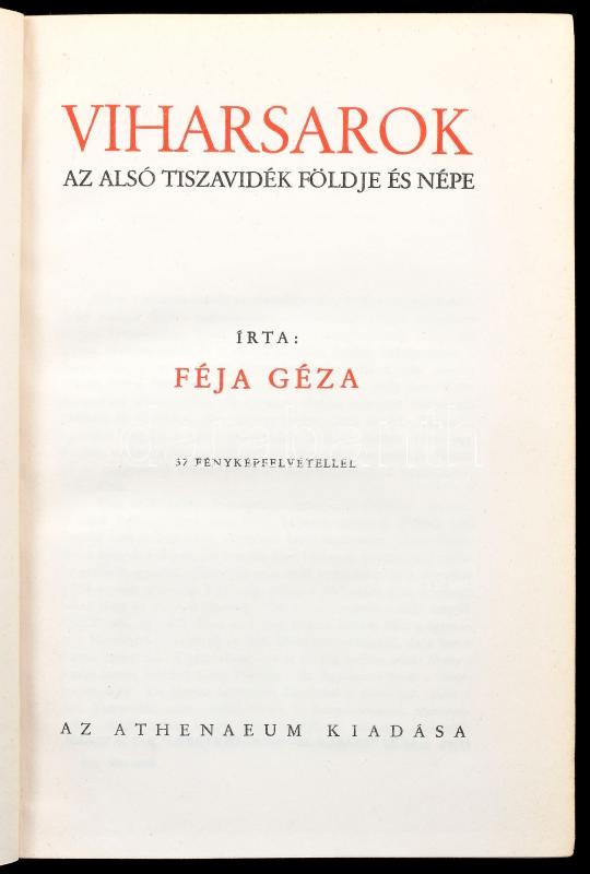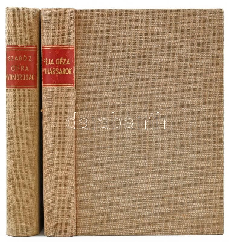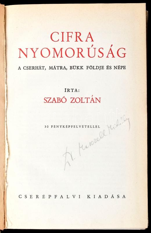 Magyarország felfedezése 2 kötete: Szabó Zoltán: Cifra nyomorúság. A Cserhát, Mátra, Bükk földje és népe. Magyarország felfedezése. Bp.,[1938],Cserépfalvi, 282 p.+ 8 t. Kiadói egészvászon-kötésben. dr. Marcell Mihály pedagógiai íróegyetemi tanár aláírásával.; Féja Géza: Viharsarok. Az alsó Tiszavidék földje és népe. Magyarország felfedezése. Bp., [1937.], Athenaeum, 275 p. + 8 t. Első kiadás. Kiadói egészvászon-kötés.