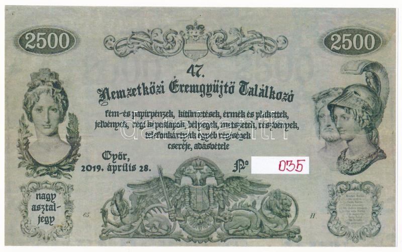 Győr 2019. "47. Nemzetközi Éremgyűjtő Találkozó" "035" sorszámú nagy asztaljegy T:I-