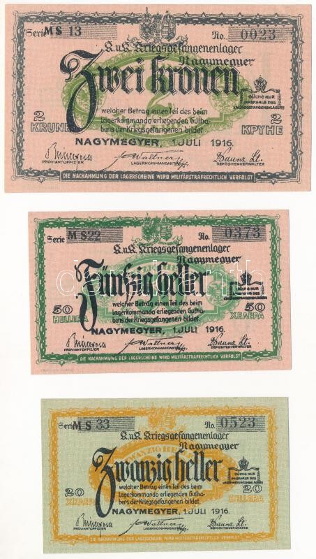 Nagymegyer / Hadifogolytábor 1916. július 1. 20f + 50f + 2K arab sorozat- és sorszámmal, "MS" betűjelzéssel T:I,I-
