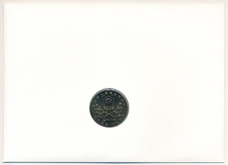 South Korea 1986. 1000 Won Cu-Ni "XXIV Summer Olympics 1988 Seoul - Basketball" non-circulating commemorative coin in envelope with stamp, cancellation and a prospectus in german C:AU patina