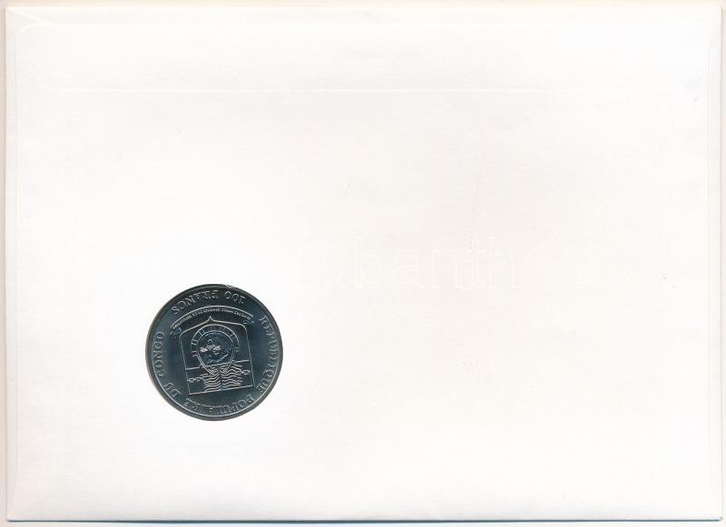 Democratic Republic of the Congo 1991. 100 Francs steel "XXV Summer Olympics 1992 Barcelona - Hurdling" non-circulating commemorative coin in envelope with stamp, cancellation and a prospectus in german C:UNC