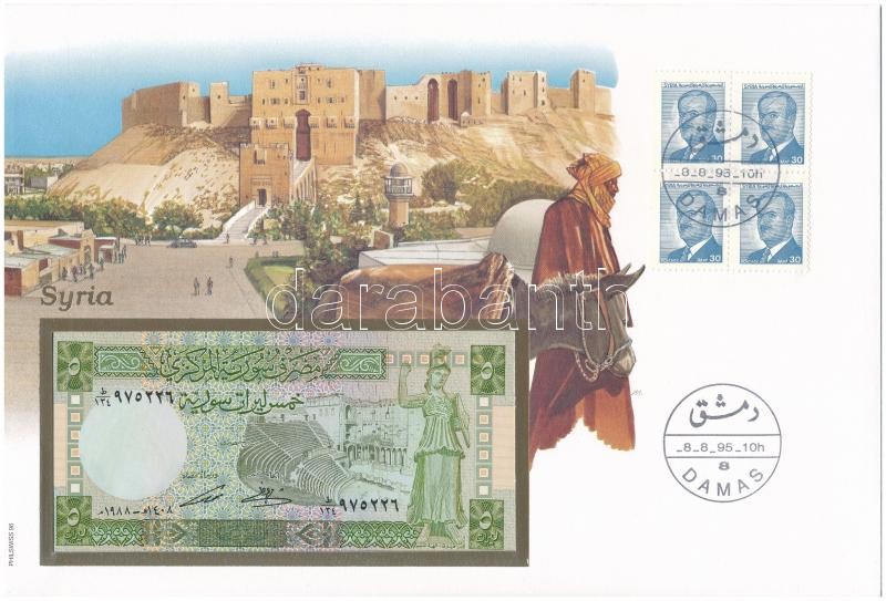 https://www.darabanth.com/en/425-Online-auction/425.0/Numismatics/Envelopes-with-Coins-and-Banknotes~1500004/Sziria-1988-5P-boritekban-alkalmi-belyeggel-es-belyegzessel-TI--Syria-1988-5-Pounds-in-e~II2631795