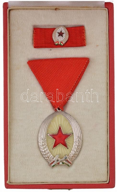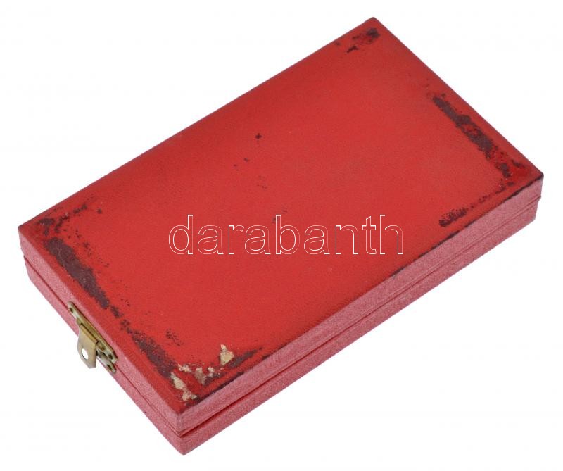 Description: 1964. "A Munka Érdemrend" ezüst fokozata, zománcozott, ezüstözött bronz kitüntetés mellszalagon, miniatűrrel és szalagsávval, ragasztónyomos, sérült tokban T:1- patina NMK 600.