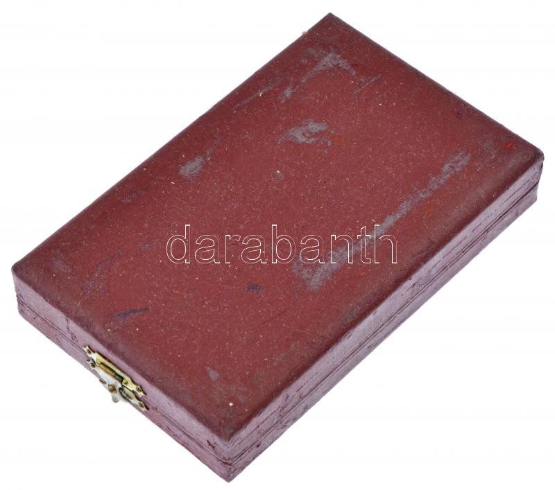 Description: 1985. "A Munka Érdemrend" arany fokozata, aranyozott és zománcozott bronz kitüntetés mellszalagon, miniatűrrel szalagsávon, kopottas eredeti tokban T:2 NMK 599.
