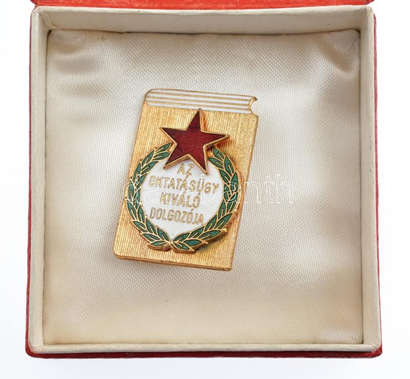 ~1964. "Az Oktatásügy Kiváló Dolgozója" zománcozott fém jelvény tokban T:1- apró zománchiba