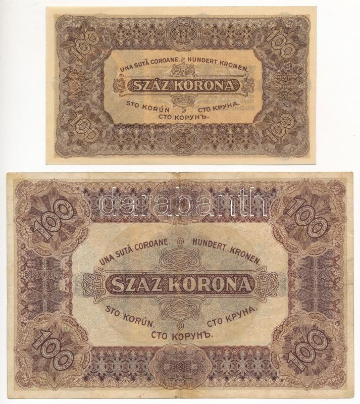 Description: 1920. 100K "A 020 046609" "Orell Füssli Zürich" nyomdahely jelöléssel + 1923. 100K nyomdahely jelölés nélkül T:III az egyiknél a hajtás mentén kis szakadás