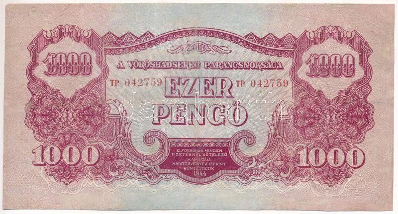 https://www.darabanth.com/en/425-Online-auction/425.0/Numismatics/Hungarian-Banknotes~1500007/1944-1000P-A-Voros-Hadsereg-Parancsnoksaga-TP-042759-TIII-restauralt-Adamo-P48~II2710660
