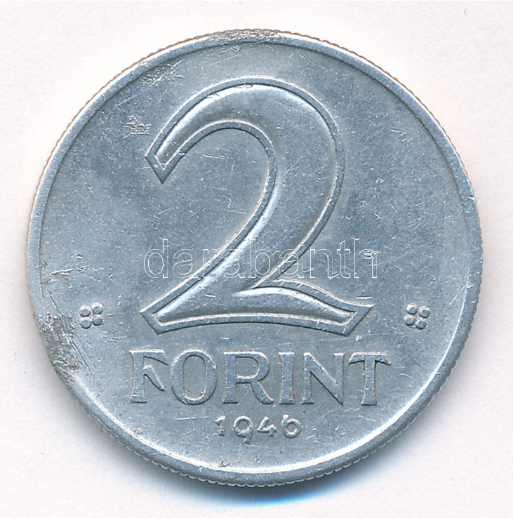 https://www.darabanth.com/en/425-Online-auction/425.0/Numismatics/Hungarian-coins-and-coins-with-Hungarian-mint-marks~1500008/1946-2Ft-Al-T2-2-anyaghiba-Adamo-F7~II2704156