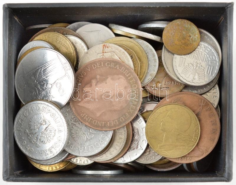 210db-os vegyes, magyar és külföldi érmetétel dobozban T:vegyes
