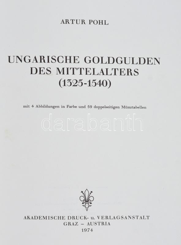 Artur Pohl: Ungarische Goldgulden des Mittelalters 1324-1540 (A középk... https://www.darabanth.com/en/425-Online-auction/425.0/Numismatics/Numismatics-Literature~1500002/Artur-Pohl-Ungarische-Goldgulden-des-Mittelalters-1324-1540-A-kozepkori-magyar-aranyforintok-A~II2711607