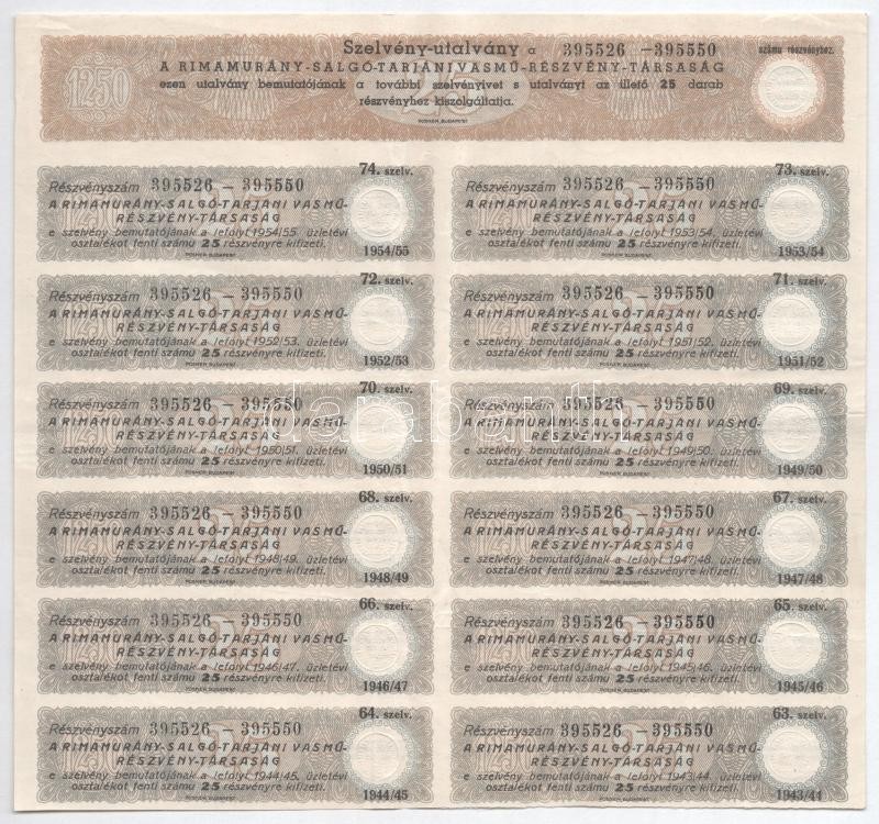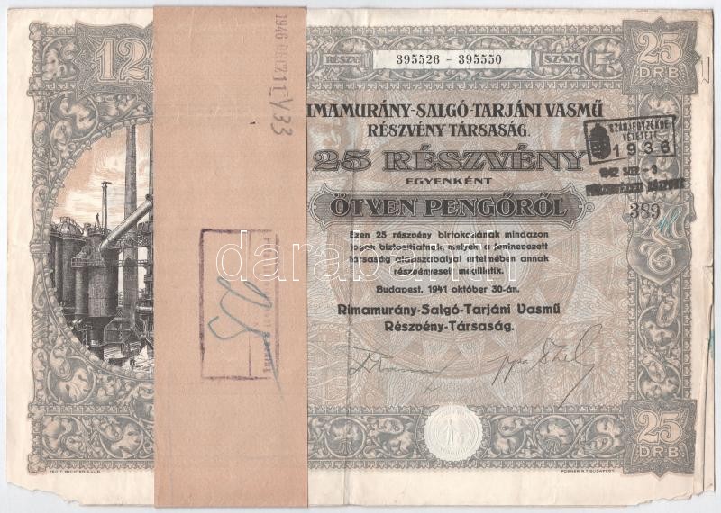 https://www.darabanth.com/en/425-Online-auction/425.0/Numismatics/Shares-and-Tickets~1500005/Budapest-1941-Rimamurany-Salgo-Tarjani-Vasmu-Reszveny-Tarsasag-25db-reszvenye-egyenken~II2705710