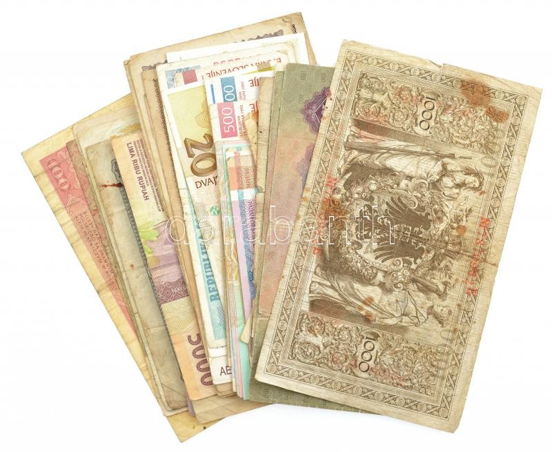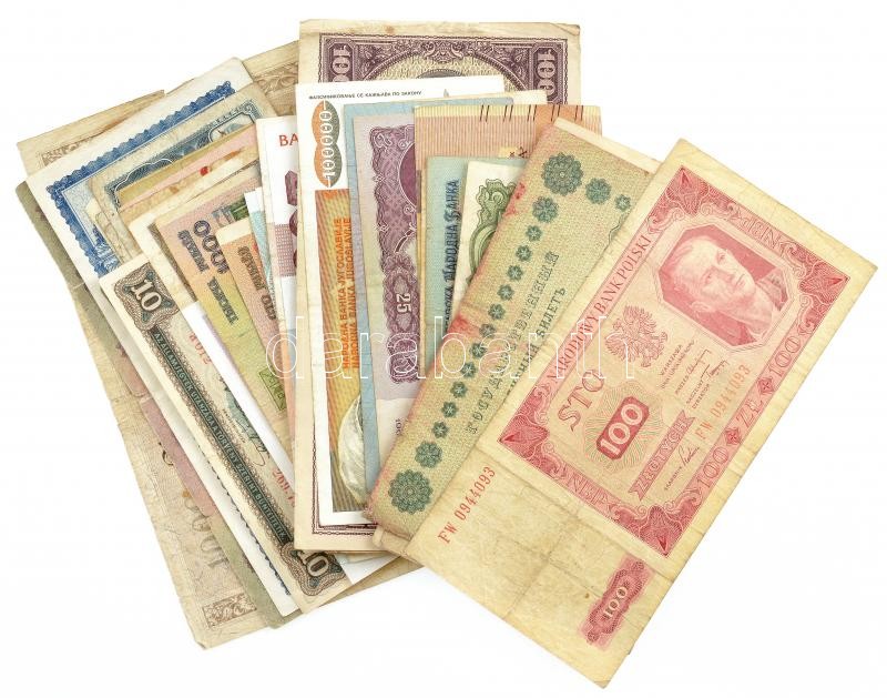 Description: 76db vegyes magyar és külföldi bankjegy, közte Szlovénia, Lengyelország, Jugoszlávia, Horvátország T:I-III (közte néhány I)