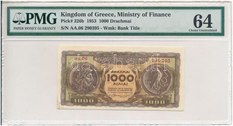 https://www.darabanth.com/en/425-Online-auction/425.0/Numismatics/Worldwide-banknotes~1500014/Gorogorszag-1953-1000Dr-PMG-plasztik-tokban-63-as-ertekelessel-TI--Greece-1953-1000-Dr~II2708447
