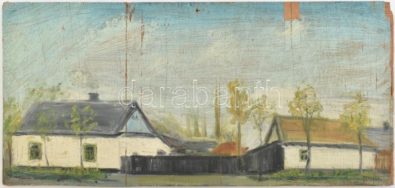 Fényes jelzéssel: Házak. Olaj, farost, sérült, 24×49 cm