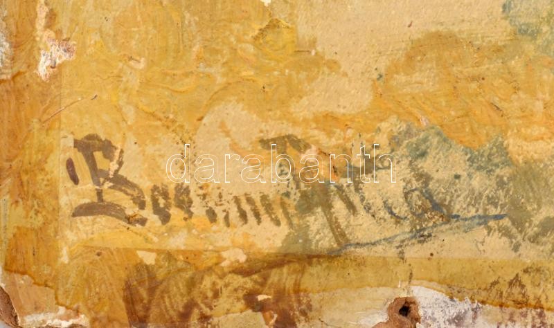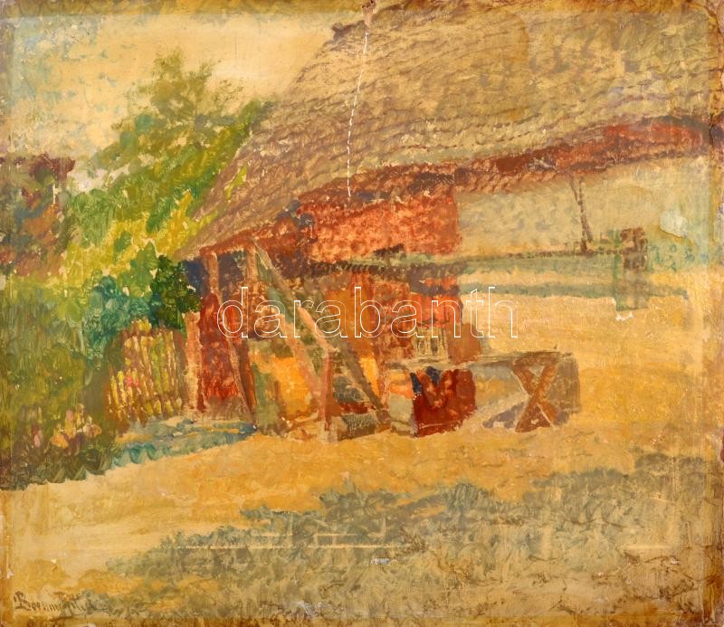 Boemm Ritta (1868-1948): Udvar, 1910 körül. Akvarell, karton. Jelezve balra lent. Hátoldalán korabeli címkén feliratozott. Sérült. 38x43,5 cm