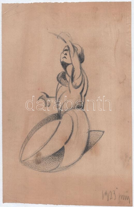 Description: Galambos Margit (?-?): 3 db női alaktanulmány, 1923 körül. Vegyes technika, papír v. hártyapapír, papírra kasírozva, jelzés nélkül, egyiken jobbra lent autográf datálással, 20x9,5 és 27x17 cm közötti méretekben