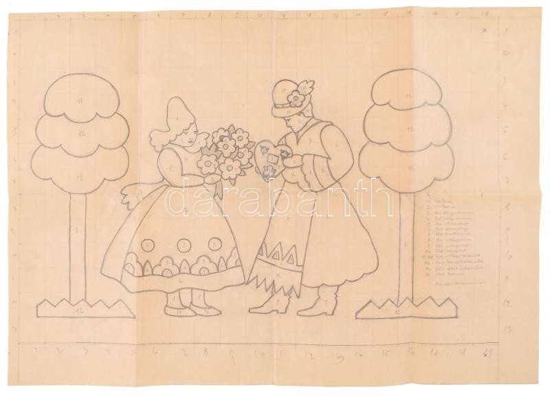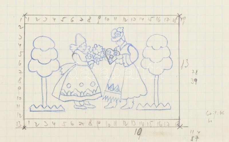 Description: Johan Hugó (1890 - 1951): 2 db vázlat festményhez vagy üvegablakhoz. Kisebb és nagyobb méret, rajta színkódokkal. Ceruza, papír. Jelzés nélkül. Proveniencia: a művész hagyatéka. 63x47 cm, 10x8 cm