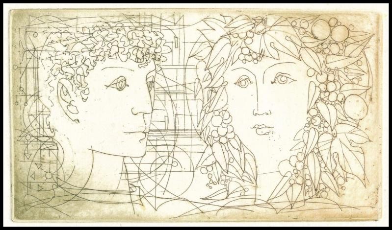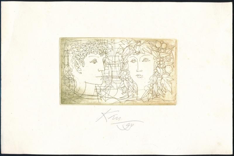 Kass János (1927-2010): Ádám és Éva (Pár) . Rézkarc, papír: Jelzett 8,5x15 cm